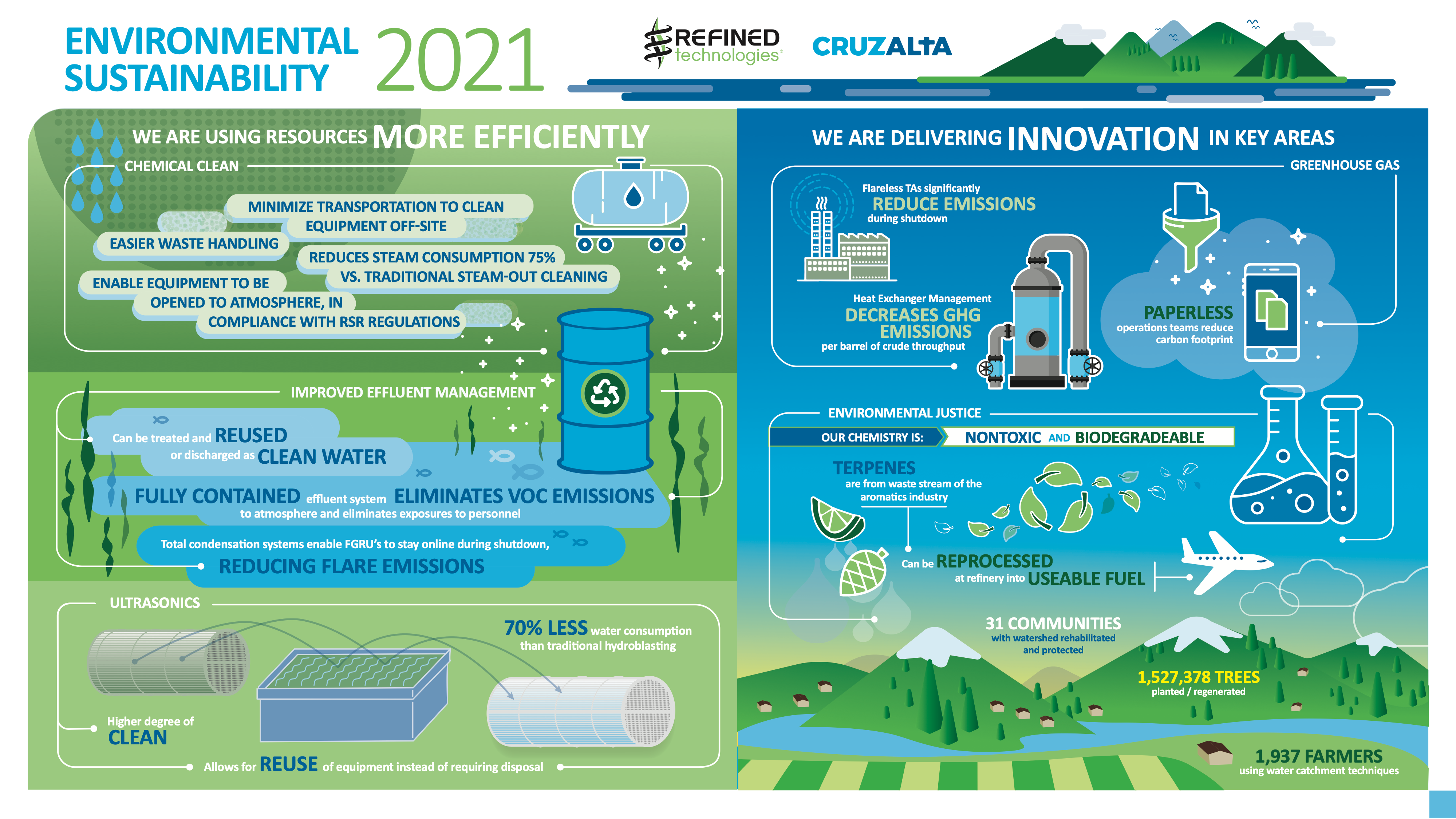 Refined Technologies needed custom infographics designed for their Environmental, Social and Governance (ESG) campaign, as well as for a new business sector program for Heat Exchange Management (HXM).